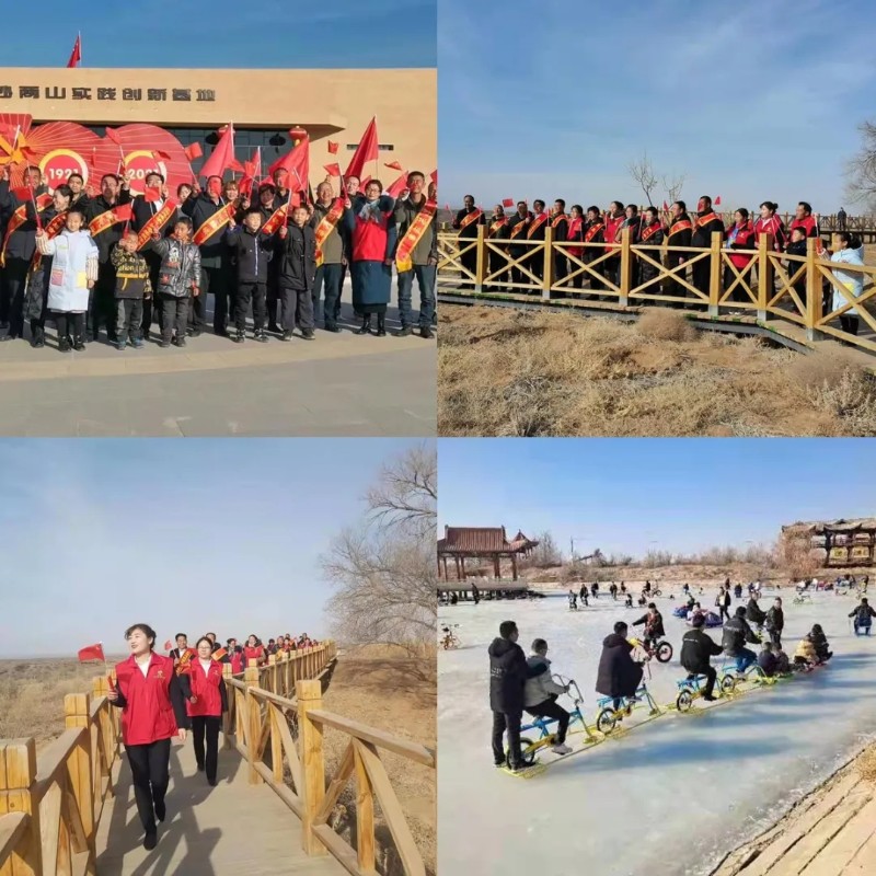 古浪八步沙兩山實(shí)踐創(chuàng)新基地春節(jié)期間組織開展《領(lǐng)航》歌曲傳唱活動。武威沙漠公園冰雪游樂項目讓游客體驗(yàn)到冰雪樂趣,感受到運(yùn)動魅力。