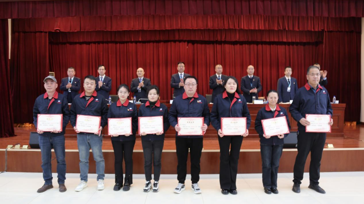 會上,黨委副書記、紀委書記、工會主席王集權同志宣讀了《關于2023年度評優(yōu)結果的通報》,授予第一工程公司等5個單位“優(yōu)秀團隊獎”,涼州區(qū)職業(yè)中等專業(yè)學校5#實訓樓建設項目經理部等11個項目經理部“優(yōu)秀項目部獎”,王峰等8名同志“優(yōu)秀管理者獎”,張德文等38名同志“優(yōu)秀員工獎”。會上還表彰了在集團首屆職工技能比武大賽中獲獎的先進集體和個人,公司領導為獲獎者(代表)頒發(fā)獎牌