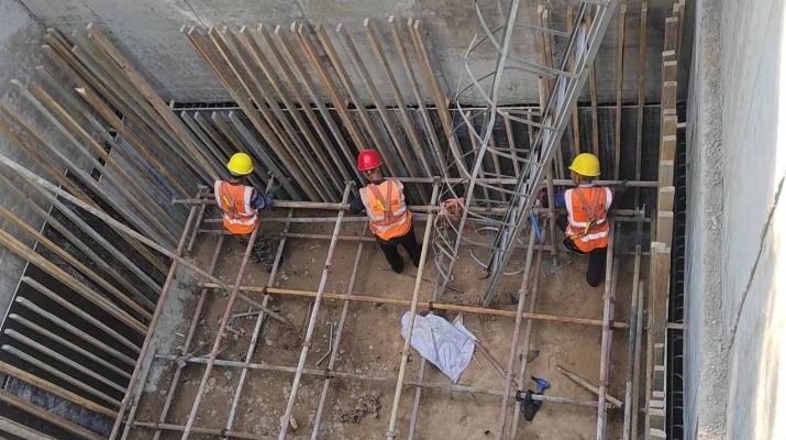 五泉下廣場(chǎng)提升改造項(xiàng)目部,根據(jù)施工現(xiàn)場(chǎng)情況,增加了3臺(tái)挖掘機(jī)、2臺(tái)鉆機(jī)、60名勞務(wù)人員,采取見(jiàn)縫插針、穿插作業(yè)的工作模式,晝夜奮戰(zhàn)在施工現(xiàn)場(chǎng)。截至目前完成了基坑支護(hù)工程、抗浮錨桿610根、土方開(kāi)挖外運(yùn)170790m3、基坑清底5500㎡、第四層換撐梁315m、集水盲溝320m、筏板墊層3830㎡、筏板防水3425㎡、1#塔吊安裝及1區(qū)筏板澆筑施工。