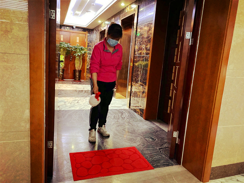 工作人員提前對辦公室、會議室、飯?zhí)玫裙矃^(qū)域進(jìn)行無死角消毒,并重點(diǎn)對門把手、設(shè)施按鍵、樓梯通道等公共重點(diǎn)部位進(jìn)行多次消毒,在辦公區(qū)入門位置放置鞋底消毒墊。