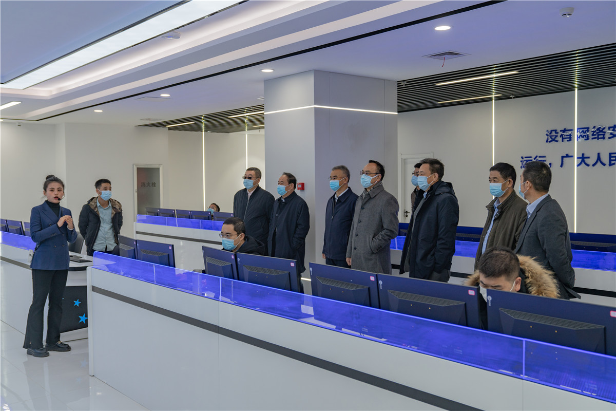 調(diào)研組首先參觀了信息港數(shù)字運營中心,包括網(wǎng)絡安全運營中心、工業(yè)互聯(lián)網(wǎng)可視中心、大數(shù)據(jù)中心和互聯(lián)科普區(qū)等區(qū)域。通過相關工作人員的介紹,調(diào)研組成員對甘肅省工業(yè)互聯(lián)網(wǎng)平臺、資產(chǎn)管理平臺、甘肅省醫(yī)保數(shù)據(jù)服務平臺等信息化平臺以及5G+工業(yè)互聯(lián)網(wǎng)智慧工廠項目、“裸眼3D”技術運用等互聯(lián)網(wǎng)技術進行了深入了解。