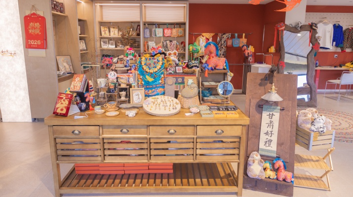 “這是我們落地的第四家‘如意甘肅’文創(chuàng)店?!遍_業(yè)儀式上,相關負責人介紹。此前,項目已在張掖平山湖大峽谷景區(qū)、蘭州中川機場T3航站樓成功運營兩家門店。經(jīng)過前期試點,一套“可復制”的標準化運營模式已初見雛形。 “中山橋店是我們的旗艦店?!表椖控撠熑吮硎?,“我們會把空間設計、動線規(guī)劃、產(chǎn)品組合邏輯等經(jīng)驗,系統(tǒng)梳理為標準化手冊。未來爭取在省內(nèi)著名景區(qū)、城市樞紐等游客密集區(qū),實現(xiàn)高效復制,確保品牌調(diào)性與體驗的高水準?!边@標志著項目從“單點盆景”向“成片風景”演進。 從“觀賞”到“帶走”:一座“一店逛甘肅”的可移動文化會客廳 走進店內(nèi),游客獲得的是“濃縮版”甘肅深度游體驗?!耙郧皝硖m州,看橋看河,買點特產(chǎn)就走了。現(xiàn)在在這里,從敦煌飛天到隴南茶葉,再到馬家窯彩陶,感覺把甘肅的文化精華都‘逛’了一遍?!币晃簧虾S慰透袊@。 這正是 “一店逛甘肅” 理念的生動體現(xiàn)。文創(chuàng)店以匠心為筆,將河西走廊的蒼茫雄渾、九曲黃河的文明積淀、隴上江南的靈秀溫婉,一一勾勒進銅奔馬擺件的靈動身姿、文創(chuàng)盲盒的驚喜奇遇、創(chuàng)意冰箱貼之中,讓每一件產(chǎn)品都成為可觸摸、可收藏的甘肅文化名片。 “我們不是雜貨鋪,而是文化編輯?!碑a(chǎn)品策劃團隊強調(diào),“每一件產(chǎn)品都必須講述一個清晰的甘肅故事。我們走遍全省86個縣區(qū),去粗取精,確保游客觸碰到的都是甘肅文化最具代表性、最富魅力的部分?!弊層慰驮谟邢迺r空內(nèi)完成對甘肅的文化認知與情感連接。 從“遺產(chǎn)”到“資產(chǎn)”:非遺在當代生活中“活態(tài)”傳承