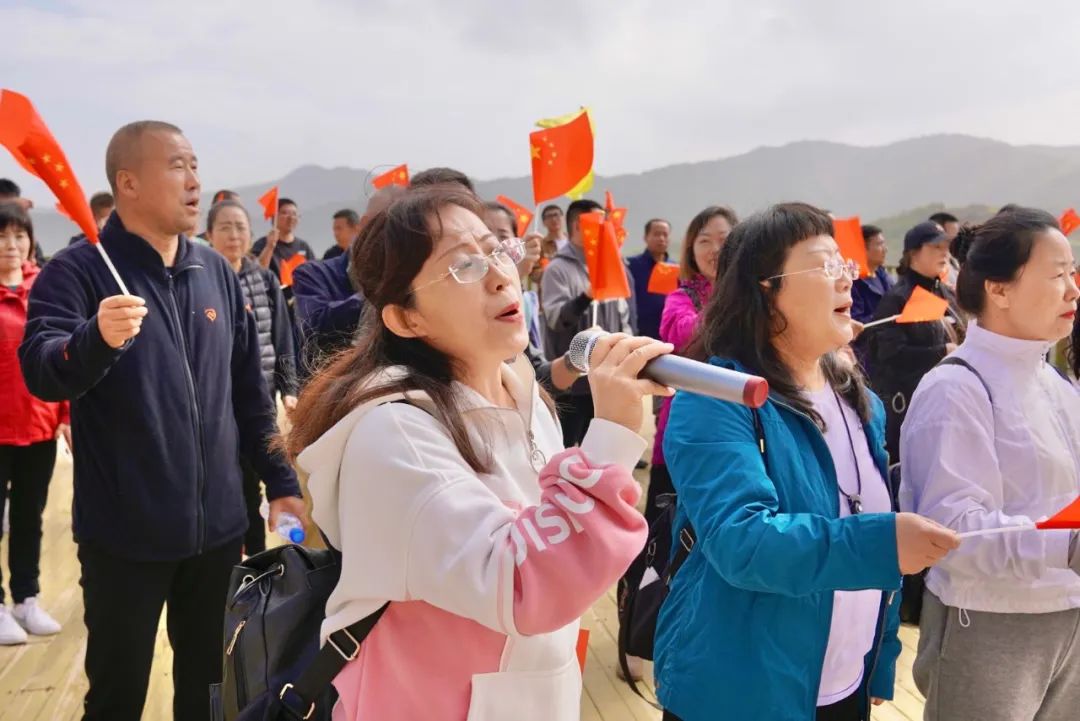 活動中,大家神采飛揚、身姿矯健,邁著有力的步伐沿著云頂山步道向著云頂廣場前進。一路上,大家結伴而行、歡聲笑語,欣賞著秋日的美景,每個人的臉上都洋溢著笑容,享受著健康運動帶來的身心愉悅。隨后,還開展了《我和我的祖國》《歌唱祖國》唱歌快閃活動。
